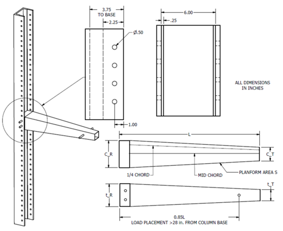 than 3 inches. Furthermore, the crane had to be tapered in